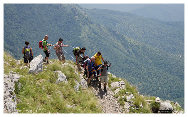 Il progetto di SMYSLY (dal ceco, “sensi”), associazione con sede a Corato (Bari), consiste invece nella realizzazione di percorsi multi sensoriali e multi esperienziali servendosi di joëlette e tavole tattili con targhette descrittive in large print e linguaggio Braille. Per joëlette si intende una carrozzina da fuori-strada, mono ruota e dotata di freni e sospensioni, che, condotta da due accompagnatori, permette a persone con disabilità, siano essi adulti o bambini, di partecipare al ricco programma di escursioni guidate ed eventi promossi dall’associazione.